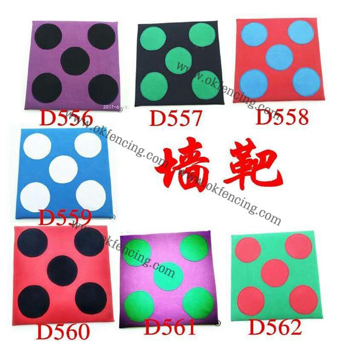 This fencing target is designed with 5 circles in difficulty coolur and produced by leather with wood at the back.